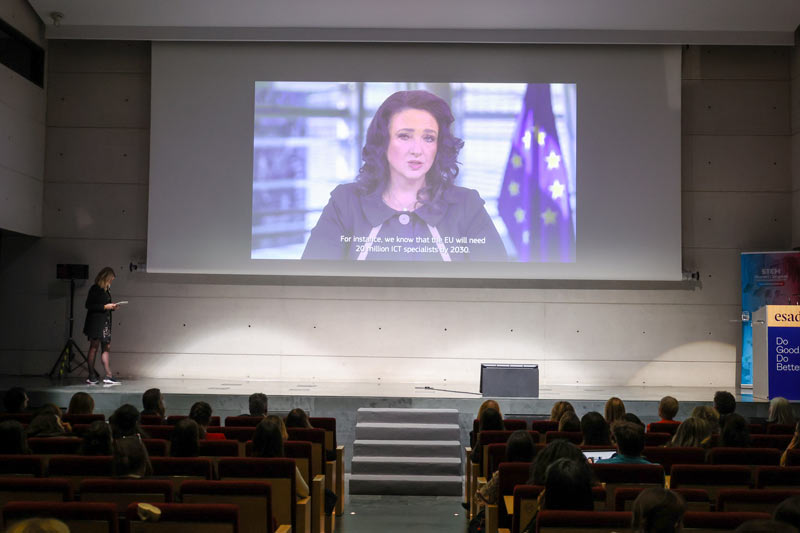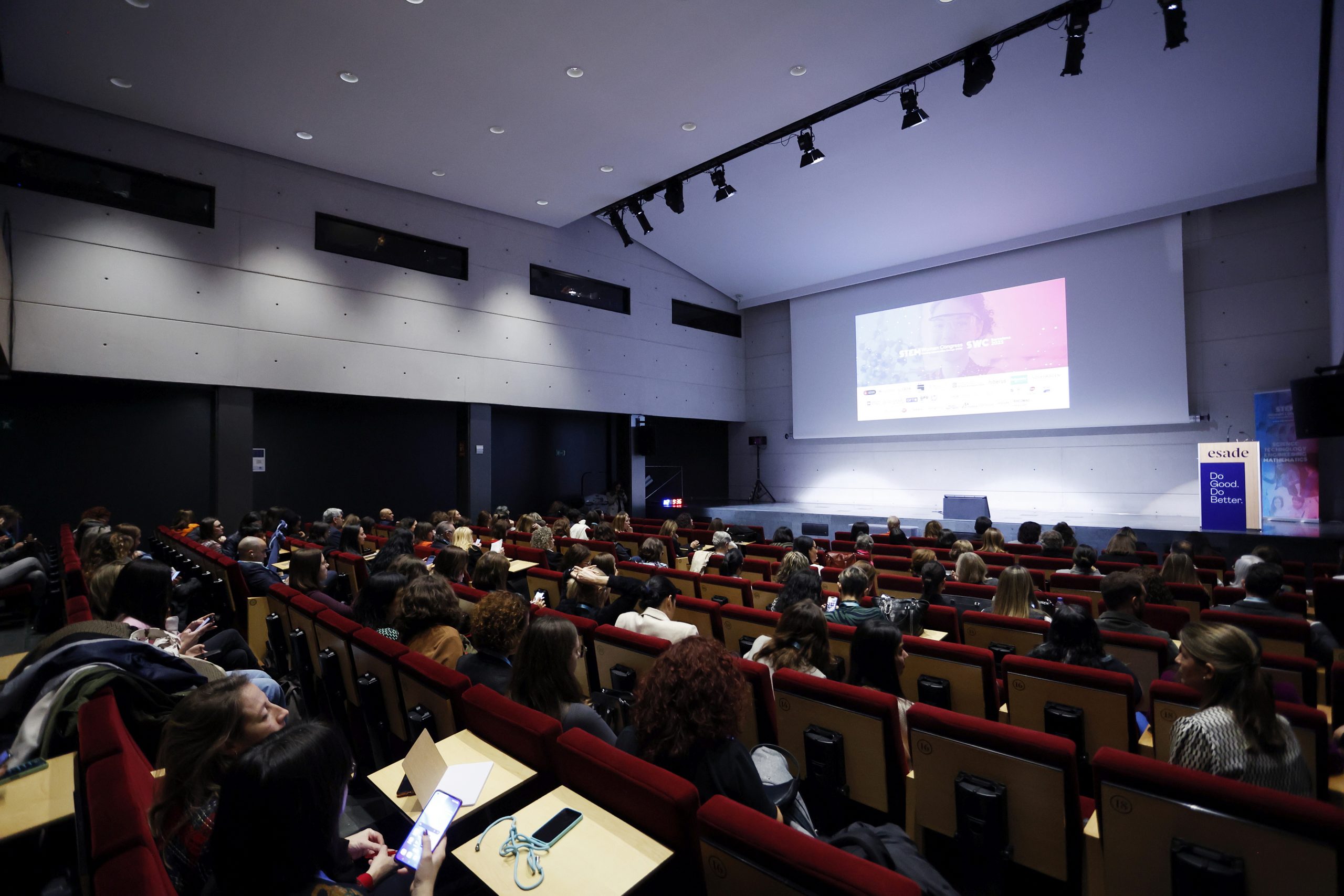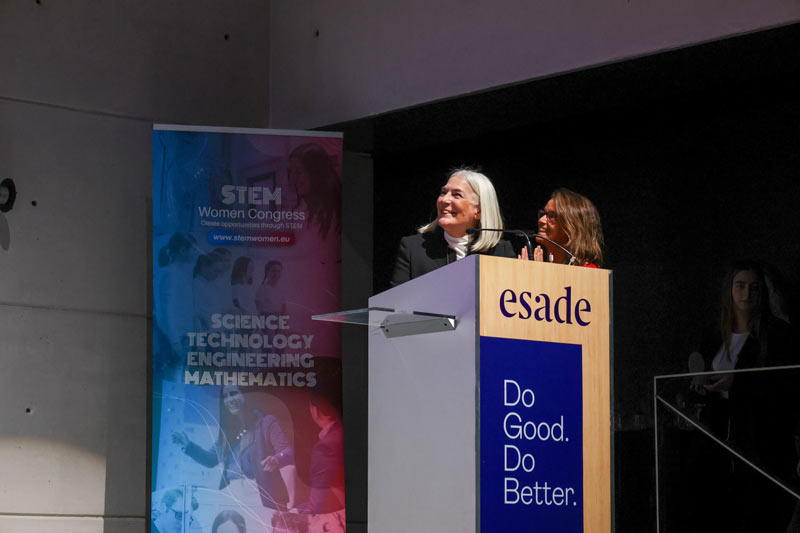 The Esade Campus auditorium in Barcelona was filled yesterday to attend the fifth edition of the STEM WOMEN CONGRESS, a year in which the initiative has also expanded to Madrid and Lisbon. In 2023, SWC has solidified its presence and expanded internationally. Thus, Barcelona, the city where SWC originated, once again became the meeting point for companies, initiatives, and STEM institutions (Science, Technology, Engineering, and Mathematics) striving to promote visibility for female talent in STEM sectors. In total, more than 700 people attended the event.